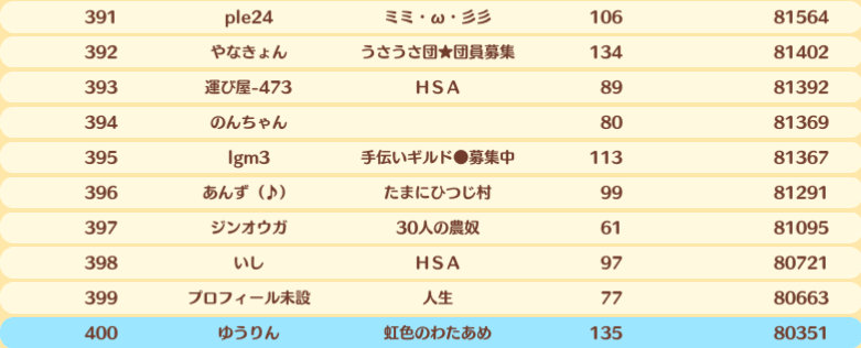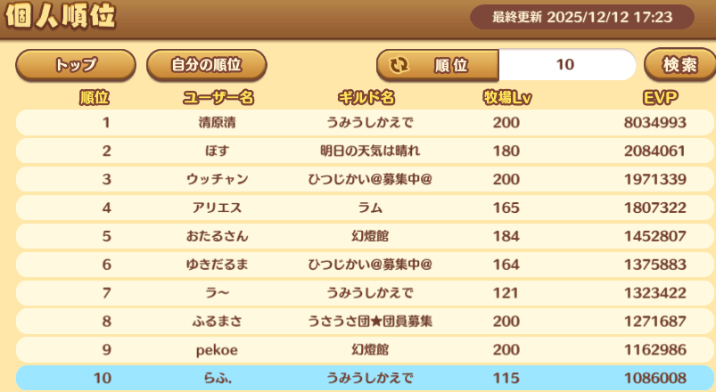 と、火力面の補強があった1週間牧場イベントと大差無い程度の伸び率です