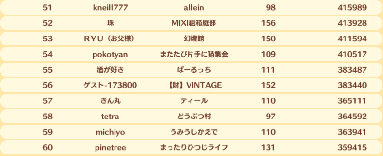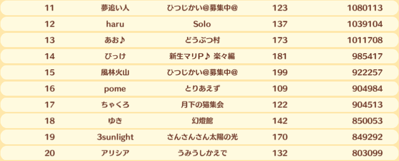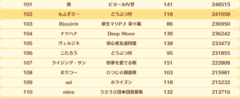 | エターナルスノーキャッスル | 1~10位 | 15 | 4 |