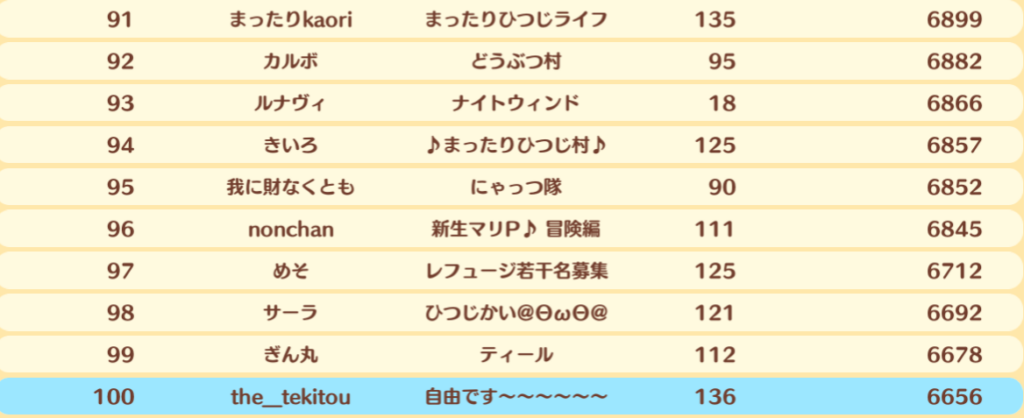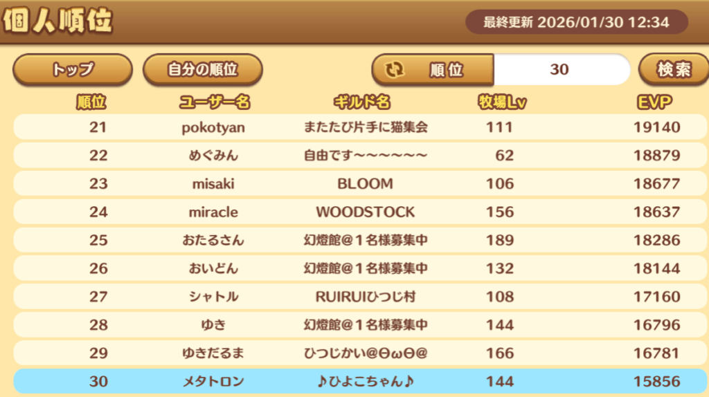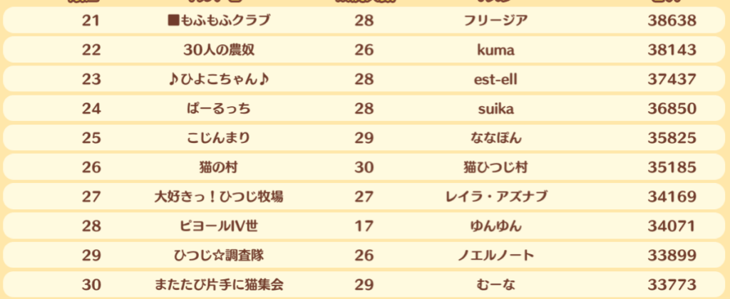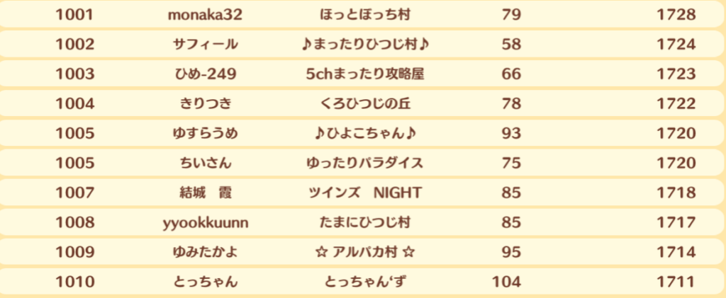 今まで共通サーバーのギルド牧場個人ランキング報酬は50位・200位・2000位でエクステリア報酬区切られていましたが、全ラインに置いて入賞が難化しました