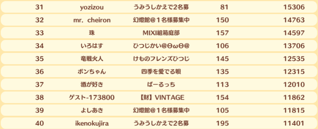 個人順位争いが激化する都合上ギルド20位ラインにもそれなりに影響が出そうな予感がします