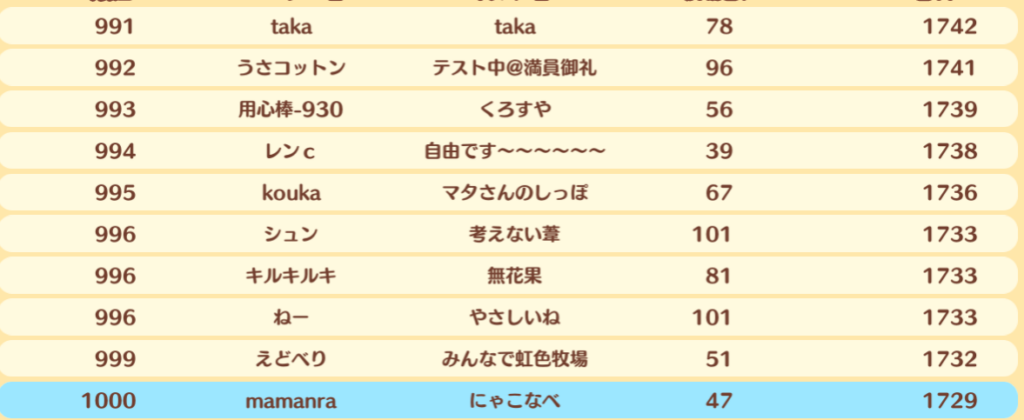 仮にデータ取っていたとしてもエクステリアの強さが変わる1000位争い と メダリオンが★4か★5かなどの汎用報酬には変動のある1000位争い の重さは全然違うので結局あまり参考にはならないかと……