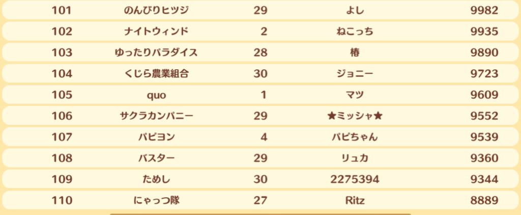 | ピュアパンダーランド | 31~100位 | 5%+12 | 12 |
