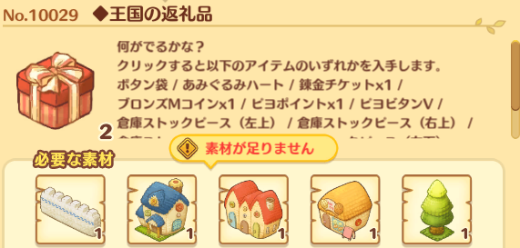 ◆依頼書が無いと、エクステリア型素材に加工する事ができないので◆あみぐるみハートを◆王国の返礼品からも狙う場合は安易に◆栄誉ボタンに加工しないように