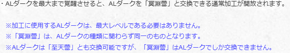 ALダークに本体戦力を求めるなら加工せず次回以降のダークチャレンジに備えましょう