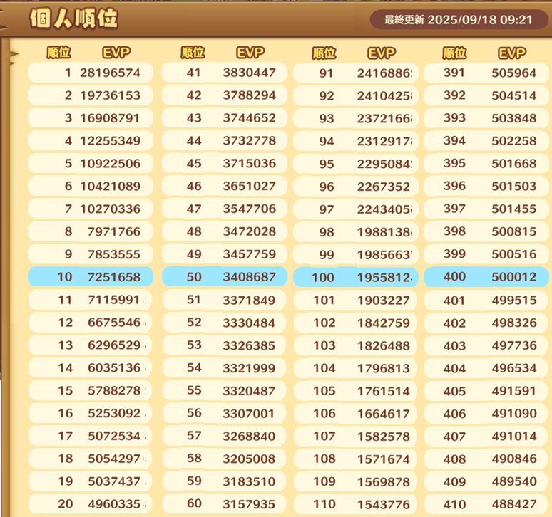 | 6 | EX+2 (3/8) | 45% | 31 |