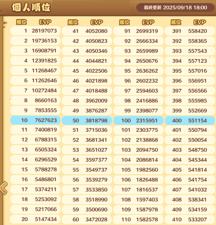 | ① | 5 | 33.4EP | ◆時限BP上限増+6 500EVP | – |