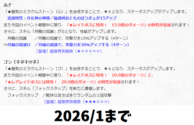 - レイドボス属性と一致する◆マスタークラスター 2