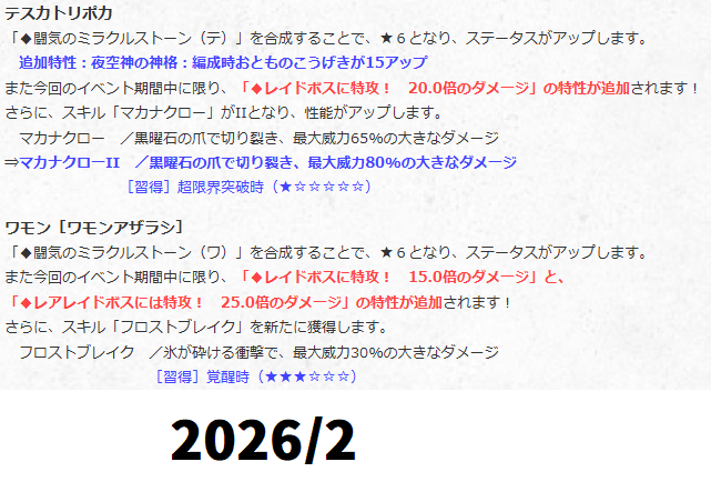 レイド特攻特性周りの環境が変わった事以外は変更点無さそう?